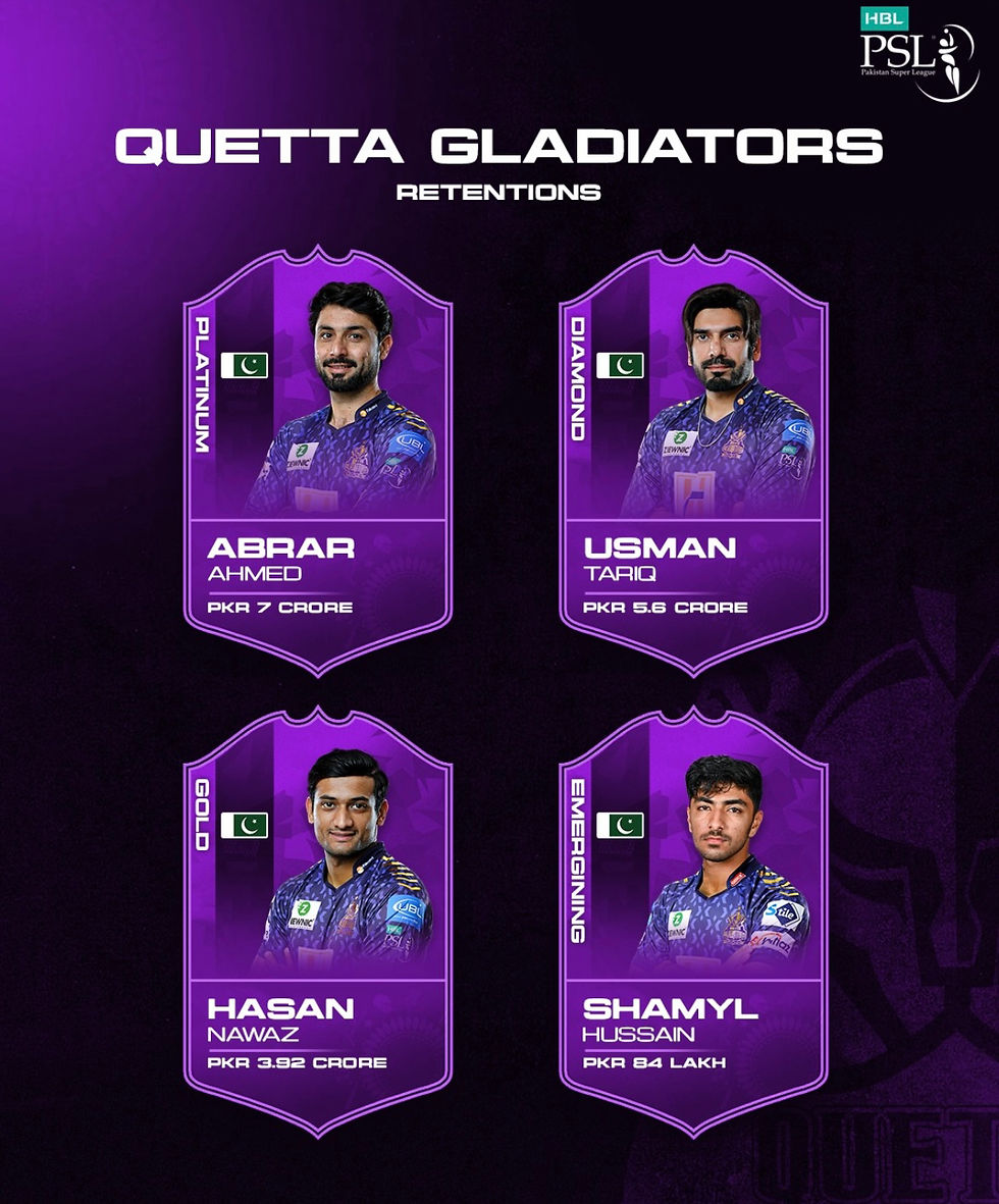 Defending champions Lahore Qalandars retained a balanced mix of experience and youth spending Rs. 127 million on their 4 retentions with a total purse of Rs. 450 million